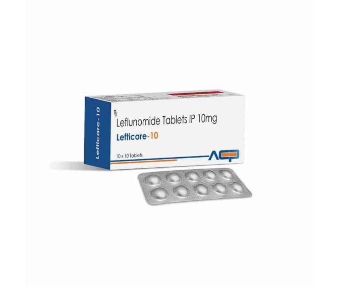 Composition : Leflunomide 10 Mg Packing : 10*10 Type : Alu Alu Detail:-Lefticare‑10 is a levofloxacin 10 mg tablet by AstoCare Pharma, used under medical supervision for bacterial infections.