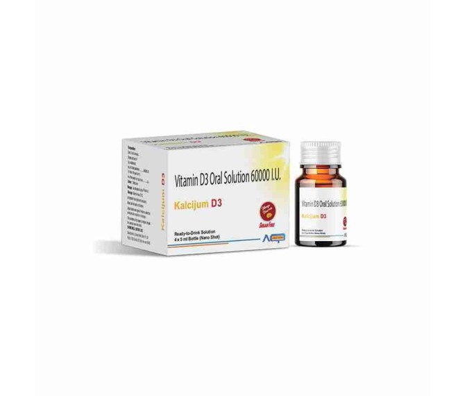 Composition : Cholecalciferol 60,000 Iu Nano Shot Packing : 1*4 Type : Nano Shot Detail:-Kalcijum-D3 Nano Shot is a fast-absorbing calcium and vitamin D3 supplement by AstoCare Pharma for stronger bones.