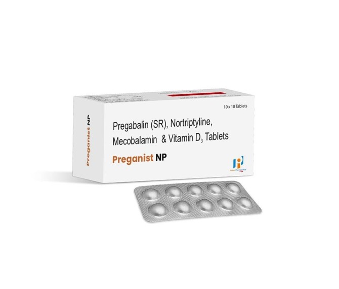Composition : Pregabalin 75 Mg + Methylcobalamin 1500 Mcg + Nortriptyline 10 Mg + Vitamin D3 Packing : 10*10 Type : Alu Alu Detail:-PREGANIST NP for effective neuropathic pain relief with Pregabalin, Nortriptyline & Methylcobalamin. From Indizen Pharmaceutical.