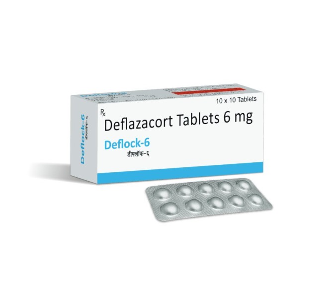 Composition : Deflazacort 6 Mg Packing : 20*10 Type : Alu Alu Detail:-Deflock 6 (Deflazacort 6 mg) is a corticosteroid used to treat inflammatory and autoimmune conditions by suppressing immune response and reducing inflammation.