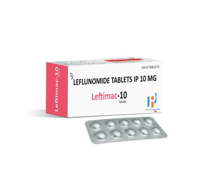 Composition : Leflunomide 10 Mg Packing : 10*10 Type : Alu Alu Detail:-Leftimac 10 contains Leflunomide 10 mg, used as an immunomodulator to treat rheumatoid arthritis and other autoimmune conditions.