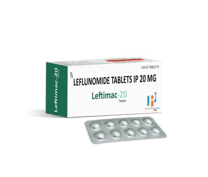 Composition : Leflunomide 20 Mg Packing : 10*10 Type : Alu Alu Detail:-Leftimac 20 contains Leflunomide 20 mg, used to manage active rheumatoid arthritis by modulating immune response and reducing inflammation.