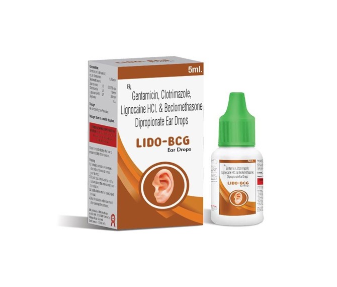 LIDOCAINE 2% + BECLOMETASONE 0.025% + CLOTRIMAZOLE 1% + GENTAMICIN 0.3% ( EAR DROPS ) – 5 ML Detail:-Lido-BCG is a pharmaceutical injection by AstoCare Pharma, developed for clinical use under medical supervision.