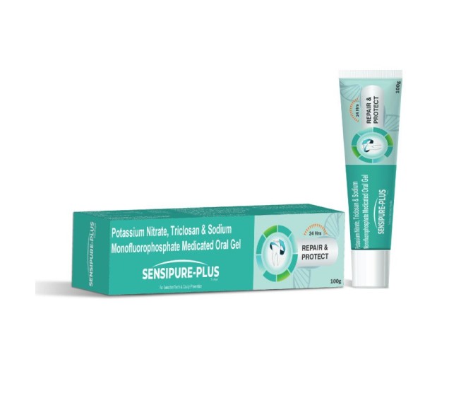 Composition : Potassium Nitrate 5%+ Sodium Monofluorophosphate 0.70% + Triclosan 0.30% Packing : 20*1 Type : 100 gm. Detail:-Sensipure Plus by Indizen Pharma: desensitizing dental gel with Potassium Nitrate 5%, Sodium Monofluorophosphate 0.7%, and Triclosan 0.3%