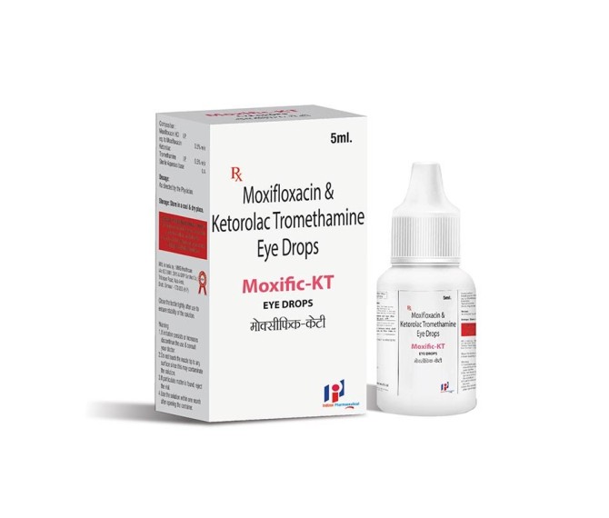 Composition : Moxifloxacin 0.5% W/w + Ketorolac Tromethaminen 0.5 % W/w Packing : 35*1 Type : 5 ML Detail:-Moxific KT with Moxifloxacin 0.5% & Ketorolac 0.5% for dual-use (eye & ear) infection relief.