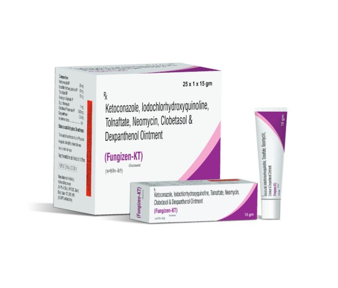 Composition : Ketoconazole 20 Mg + Clobetasol Propionate 0.05 Mg + Neomycin 1 Mg + Tolnaftate 10 Mg + Lodochlorhydroxyquinoline 10 Mg + Dexpanthenol 0.5 Mg. Packing : 15gm. Type : Plastic Box Detail:-Ketoconazole 20 mg + Clobetasol 0.05 mg + Neomycin 1 mg + Tolnaftate 10 mg + Lodochlorhydroxyquinoline 10 mg + Dexpanthenol 0.5 mg — topical cream for complex fungal and bacterial skin infections