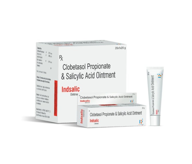 Composition : Clobetasole Propionate 0.05% + Salicylic Acid 3.00% + Added Butylated Hydroxytoluene 0.01% Packing : 20*1*20 Type : 20gm. Detail:-INDSALIC by Indizen Pharma uses a potent combination of Clobetasol 0.05% and Salicylic Acid 3% for keratotic and scaling dermatoses.