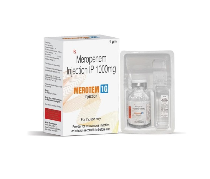 Composition : Meropenem 1 G. Injection With Tray Pack. Packing : 1G. Inj Type : Mono Pack Detail:-Meropenem Injection is used in severe bacterial infections and prevention of infection after surgery of the colon or rectum.