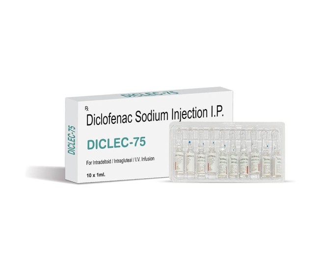 Composition : Diclofenac 75 Mg 1 Ml. Packing : 10*1 Type : 10*1 Ml Detail:-Diclofenac Sodium Injection a nonsteroidal anti-inflammatory drug used to treat adults with mild to moderate pain Edit Snippet