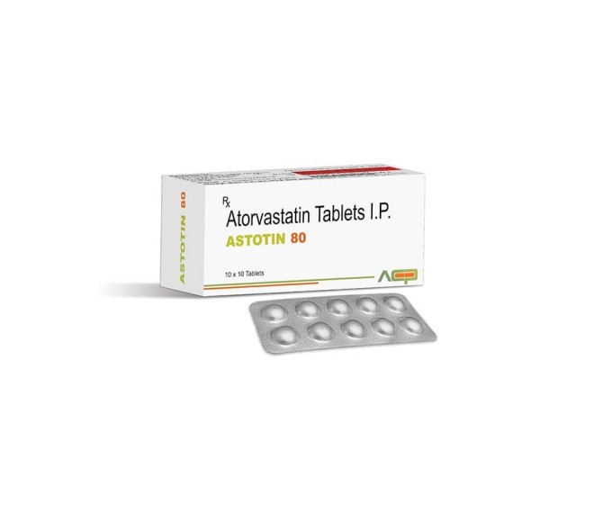Composition : Atorvastatin 80 Mg Packing : 10*10 Type : Alu Alu Detail:-Astotin 80 mg (Atorvastatin) by Asto Care Pharma — high-strength statin for managing very high cholesterol and reducing cardiovascular risk.