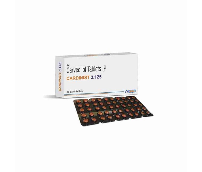 Composition : Carvedilol 3.125 Packing : 4*5*10 Type :  Blister Detail:-Cardinist 3.125 mg – carvedilol tablet by AstoCare Pharma. A low‑dose alpha‑beta blocker used in hypertension, chronic heart failure, and left ventricular dysfunction.