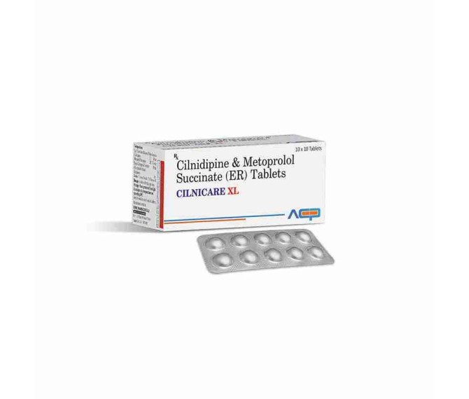 Composition : Cilindipine 10 Mg + Metoprolol 50 Mg Packing : 10*10 Type : Alu Alu Detail:-Cilnicare XL 50 (Cilnidipine 10 mg + Metoprolol Succinate 50 mg) – a once‑daily extended‑release combination tablet by AstoCare Pharma for effective management of hypertension.