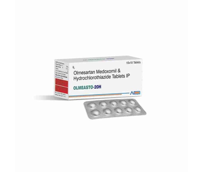 Composition : Olmesartan 20 Mg + Hydrochlorothiazide 12.50 Mg Packing : 10*10 Type : Alu Alu Detail:-Olmeasto 20 H combines Olmesartan and Hydrochlorothiazide for effective blood pressure control.
