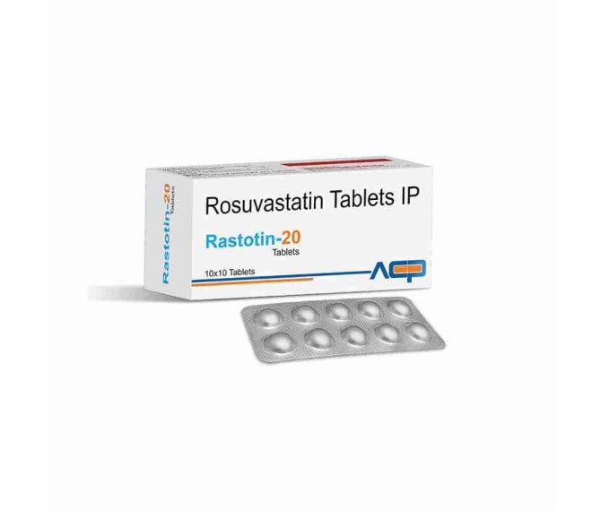 Composition : Rosuvastatin 20 Mg Packing : 10*10 Type :  Alu Alu Detail:-Rastotin 20 from Asto Care Pharma contains Rosuvastatin 20 mg per tablet. It helps reduce LDL cholesterol and triglycerides effectively, supporting cardiovascular health.