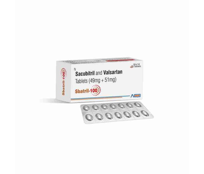 Composition : Sacubitril 49 Mg + Valsartan 51 Mg Packing : 10*14 Type : Alu Alu Detail:-Sbatril 100 combines sacubitril 49 mg and valsartan 51 mg to manage heart failure