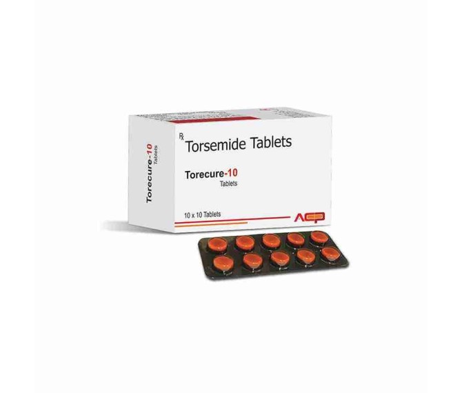 Composition : Torsemide 10 Mg Packing : 10*10 Type : Blister Detail:-Torecure 10 contains torsemide 10 mg, a loop diuretic used to reduce fluid retention and treat high blood pressure.