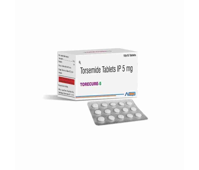 Composition : Torsemide 5 Mg Packing : 10*15 Type : Blister Detail:-Torecure 5 contains torsemide 5 mg, a loop diuretic used to treat hypertension and fluid retention (edema).
