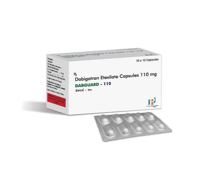 Composition : Dabigatran 110 Packing : 10*10 Type : Alu Alu Detail:-Dabigatran 110 capsules is an anticoagulant or blood thinner. It helps prevent and treat blood clots. It is used to reduce the risk of stroke and heart attack.