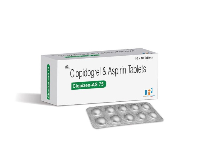 Composition : Clopidogrel 75 Mg + Aspirin 75 Mg Packing : 10*15 Type : Strip Packing Detail:-Clopidogrel 75 Mg + Aspirin 75 Mg helps in the free flow of blood, thereby preventing a heart attack, stroke, deep vein thrombosis, and pulmonary embolism.