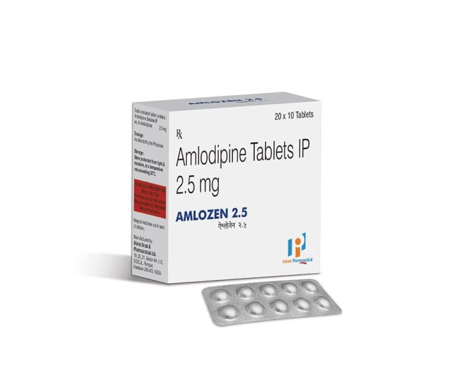 Composition : Amlodipine 2.5 Mg Packing : 20*10 Type : Blister Detail:-Amlodipine 2.5 Mg tablets is a medication used primarily for the management of high blood pressure (hypertension) and angina (Prinzmetal’s or variant angina).