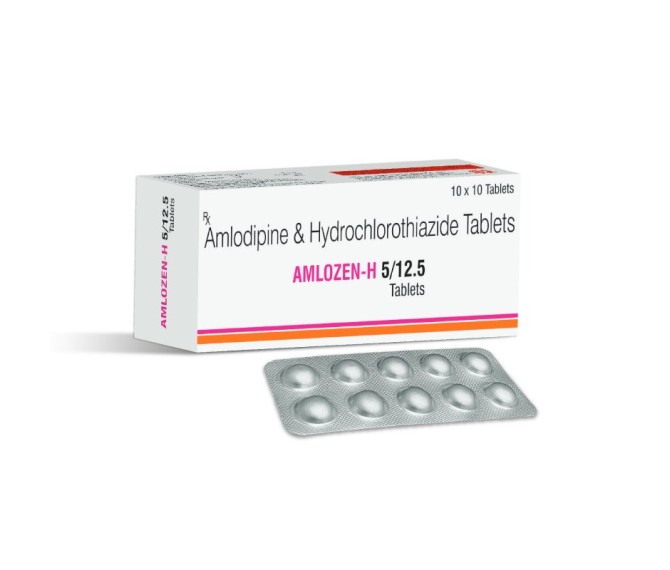 Composition : Amlodipine 5 Mg + Hydrochlorothiazide 12.5 Mg Packing : 10*10 Type : Alu Alu Detail:-Amlodipine 5 Mg + Hydrochlorothiazide 12.5 Mg used to treat high blood pressure and reduce the risk of heart attacks, strokes, and kidney problems.