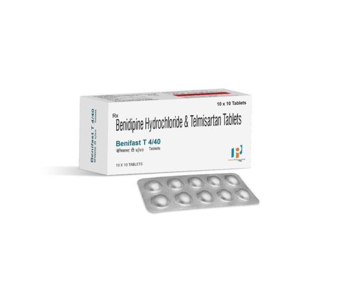 Composition : Benidipine 4 Mg + Telmisartan 40 Mg Packing : 10*10 Type : Alu Alu Detail:-Benidipine 4 Mg + Telmisartan 40 Mg helps lower blood pressure, thereby reducing the chances of heart problems such as heart attack and stroke.