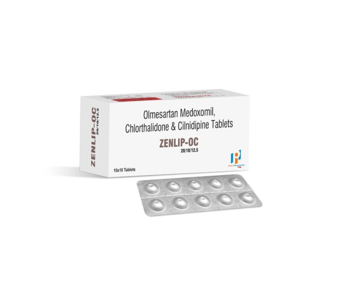 Composition : Cilnidipine 10 Mg + Olmesartan 20 Mg + Chlorthalidone 12.5 Packing : 10*10 Type : Alu Alu Detail:-Cilnidipine 10 Mg + Olmesartan 20 Mg + Chlorthalidone 12.5 belongs to the class of medicines called hypertensives primarily used to treat hypertension.