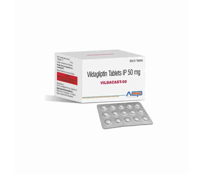 Composition : Vildagliptin 50 Mg Packing : 10*2*15 Type : Alu Alu Detail:-VILDACAST 50 by Asto Care Pharmaceutical helps control blood sugar levels in Type 2 Diabetes patients and supports better glycemic management.