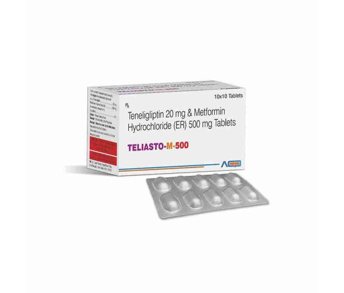 Composition : Teneligliptin 20 Mg + Metformin 500 Mg (Dcgi Approved) Packing : 10*10 Type : Alu Alu Detail:-TELIASTO M 500 by Asto Care Pharmaceutical helps regulate blood sugar levels and supports effective diabetes management.