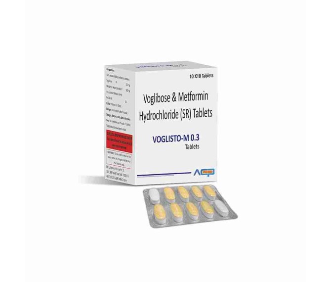Composition : Voglibose 0.3 + Metformin 500 Bilayered Tablet Packing : 10*10 Type : Blister Detail:-VOGLISTO M 0.3 by Asto Care Pharmaceutical helps control blood sugar in type 2 diabetes with Voglibose and Metformin.
