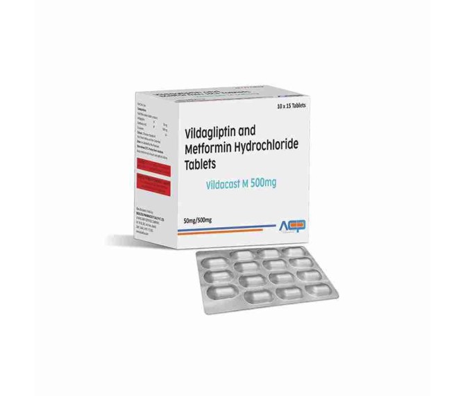 Composition : Vildagliptin 50 Mg + Metformin 500 Mg(Small Size Tablet Powered With Imickro Technology Packing : 10*15 Type :  Alu Alu Detail:-VILDACAST M 500 by Asto Care Pharmaceutical helps control blood sugar levels and supports effective diabetes management.