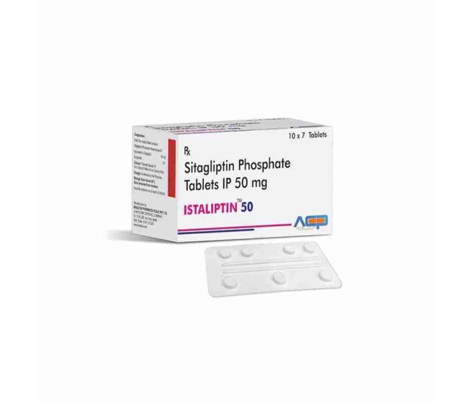 Composition : Sitagliptin 50 Mg Packing : 10*7 Type :  Blister Detail:-ISTALIPTIN DP 50 by Asto Care Pharmaceutical helps manage Type 2 Diabetes by controlling blood sugar levels and enhancing insulin response for better glucose regulation.