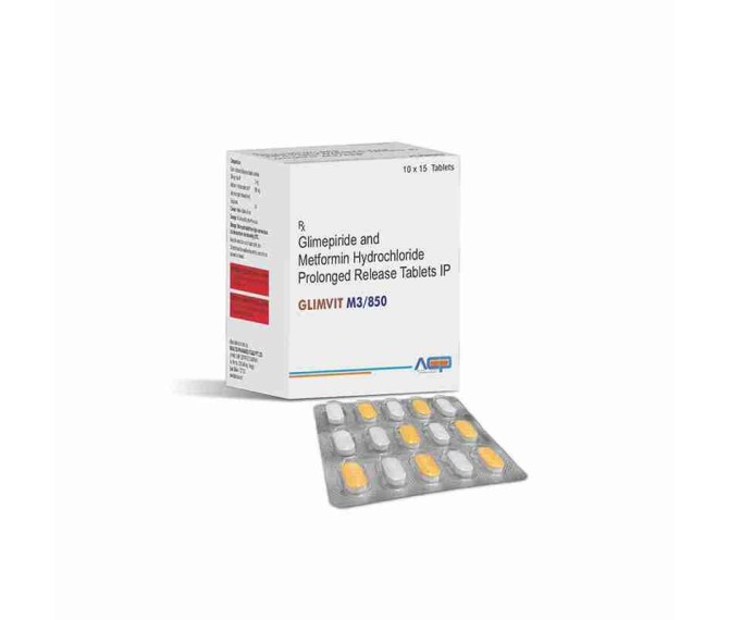 Composition : Glimipride 3 Mg + Metformin 850 / Bilayer Tab Packing : 10*15 Type : Blister Detail:-GLIMVIT M3/850 by Asto Care Pharmaceutical helps control blood sugar in Type 2 Diabetes and improves insulin sensitivity.