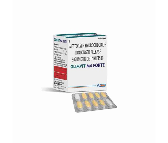 Composition : Glimipride 4 Mg + Metformin 1000 / Bilayer Tab Packing : 10*10 Type : Blister Detail:-GLIMVIT M4 FORTE by Asto Care Pharmaceutical helps control high blood sugar in Type 2 Diabetes and enhances insulin function for effective glucose management.