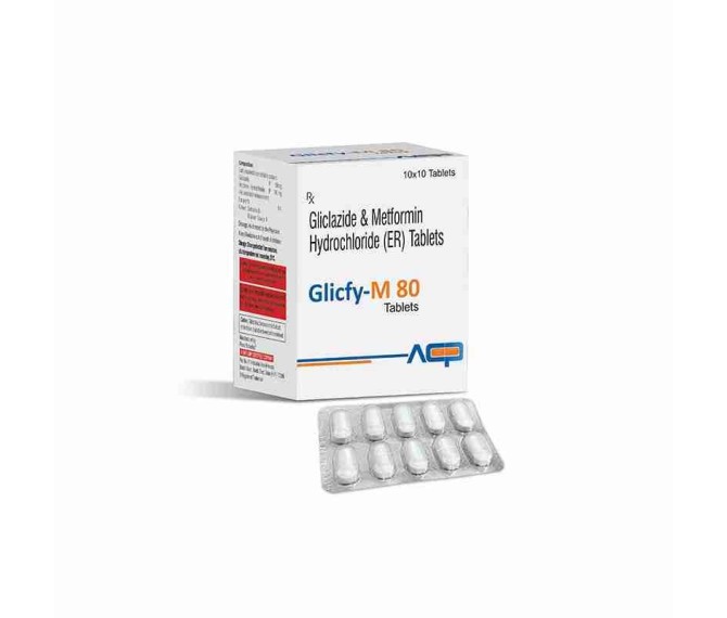Composition : Gliclazide 80 Mg + Metformin 500 Mg (Extended Release ) Packing : 10*10 Type : Blister Detail:-GLICFY M 80 – Asto Care Pharmaceutical helps manage type 2 diabetes by controlling blood sugar levels effectively.