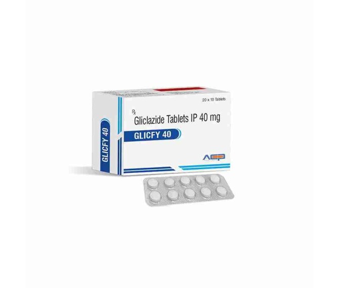 Composition : Gliclazide 40 Mg Sr Packing : 20*10 Type : Blister Detail:-GLICFY 40 (Gliclazide 40mg) helps manage type 2 diabetes by controlling blood sugar levels and supporting better glycemic control in adults.