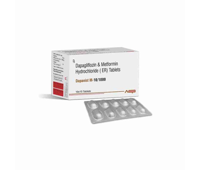 Composition : Dapagliflozin 10 Mg + Metformin 1000 Mg Packing : 10*10 Type : Alu Alu Detail:-DAPANIST M 10/1000 combines Dapagliflozin and Metformin to help control blood sugar in adults with type 2 diabetes, improving glycemic control effectively.