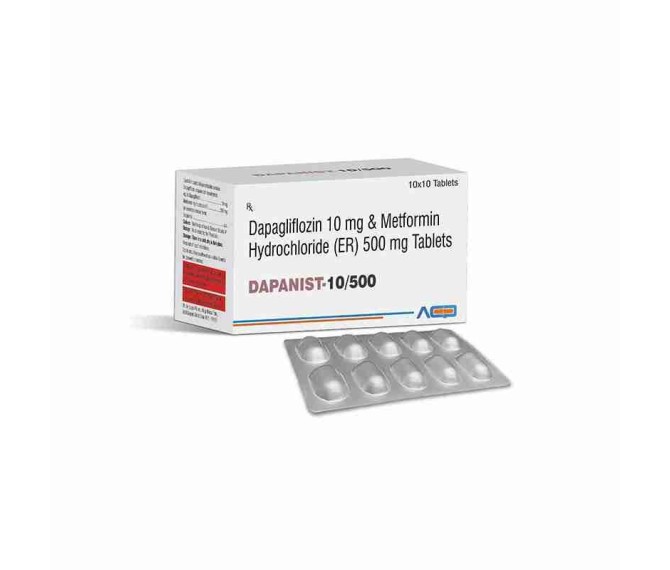 Composition : Dapagliflozin 10 Mg + Metformin 500 Mg Packing : 10*10 Type :  Alu Alu Detail:-DAPANIST M 10/500 combines Dapagliflozin and Metformin to help control blood sugar in adults with type 2 diabetes, improving glycemic control effectively
