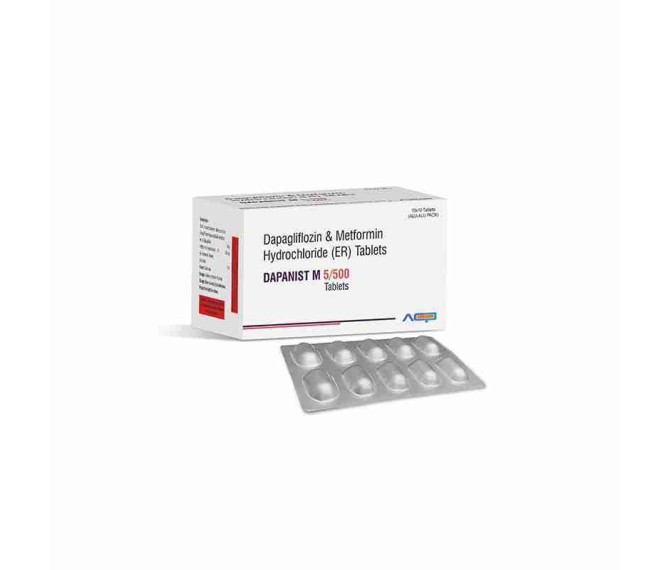 Dapagliflozin 5 Mg + Metformin 500 Mg Detail:-DAPANIST M 5/500 combines Dapagliflozin and Metformin to help control blood sugar in adults with type 2 diabetes, improving glycemic control effectively.