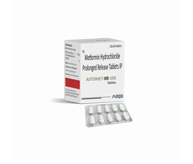 Metformin Hydrochloride 500 Mg Sr Blister Detail:-ASTOMET XR 500 is an extended-release Metformin tablet used to manage type 2 diabetes by controlling blood sugar levels and improving insulin response.