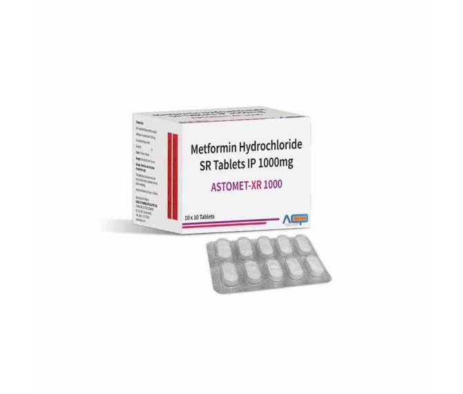 Metformin Hydrochloride 1000 Mg Sr Blister Detail:-ASTOMET XR 1000 is an extended-release Metformin tablet used to manage type 2 diabetes by controlling blood sugar levels and improving insulin response.