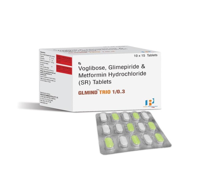 Composition : Glimepiride 1 Mg + Metformin 500 + Voglibose 0.3 Packing : 10*15 Type : Blister Detail:-Glimepiride 1mg + Metformin 500mg + Voglibose 0.3mg helps manage Type 2 diabetes by controlling blood sugar and improving insulin use.