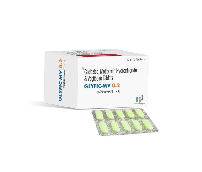 Composition : Gliclazide 80 Mg + Metformin 500 Mg + Voglibose 0.2 Packing : 10*10 Type : Blister Detail:-Gliclazide 80 Mg + Metformin 500 Mg + Voglibose 0.2 is used to treat type II diabetes in patients where blood sugar level is not controlled with diet alone.