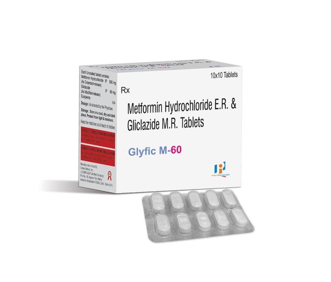 Composition : Gliclazide 60 Mg + Metformin 500 Mg (Extended Release ) Packing : 10*10 Type : Blister Detail:-Gliclazide 60 Mg + Metformin 500 Mg is belongs to a class of medicine known as an anti-diabetic. It is primarily used to treat Type 2 diabetes