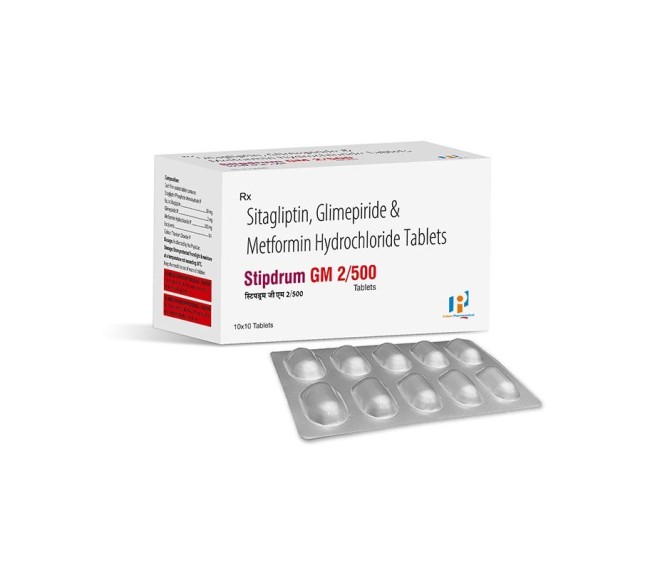 Composition : Sitagliptin 50 Mg + Glimepiride 2 Mg Metformin 500 Mg Packing : 10*10 Type : Alu Alu Detail:-Sitagliptin 50 Mg + Glimepiride 2 Mg + Metformin 500 Mg is used in addition to diet and exercise to improve blood sugar control in adults with type 2 diabetes.