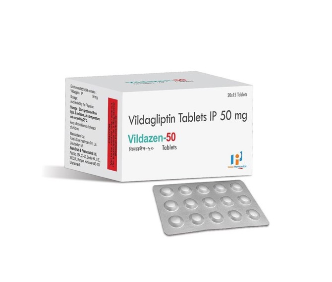 Composition : Vildagliptin 50 Mg Packing : 20*15 Type : Alu Alu Detail:-Vildagliptin 100 Mg Sr Tab is used together with a healthy diet to control blood sugar levels. This helps to prevent serious complications of diabetes.