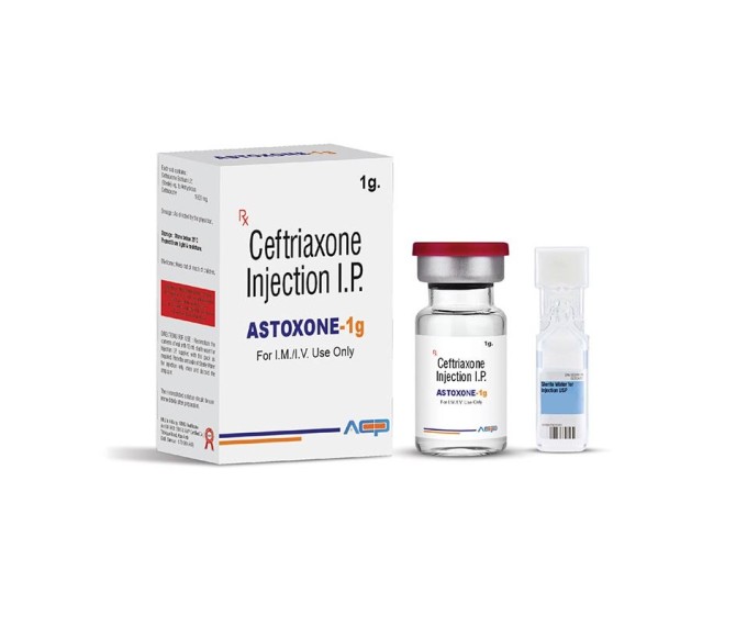 Ceftriaxone 1 Gm Inj Detail:-Astoxone 1 g injection with Ceftriaxone 1 g for treating bacterial infections. Quality broad-spectrum antibiotic by Asto Care Pharma.
