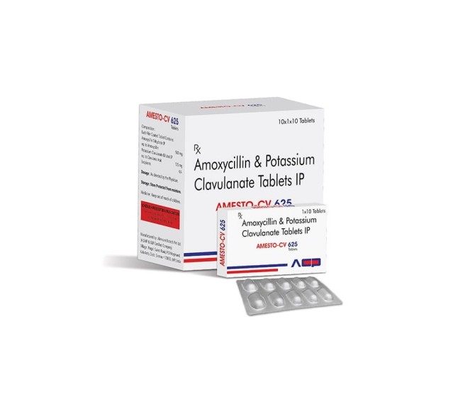 Amoxycillin 500 + Clavulanate 125 Mg Alu Alu Pack Tab. Mono Pack Detail:-Amesto CV 625 (Amoxycillin 500 mg + Clavulanate 125 mg) by Asto Care. Effective antibiotic combination for a variety of bacterial infections. Use under medical supervision.