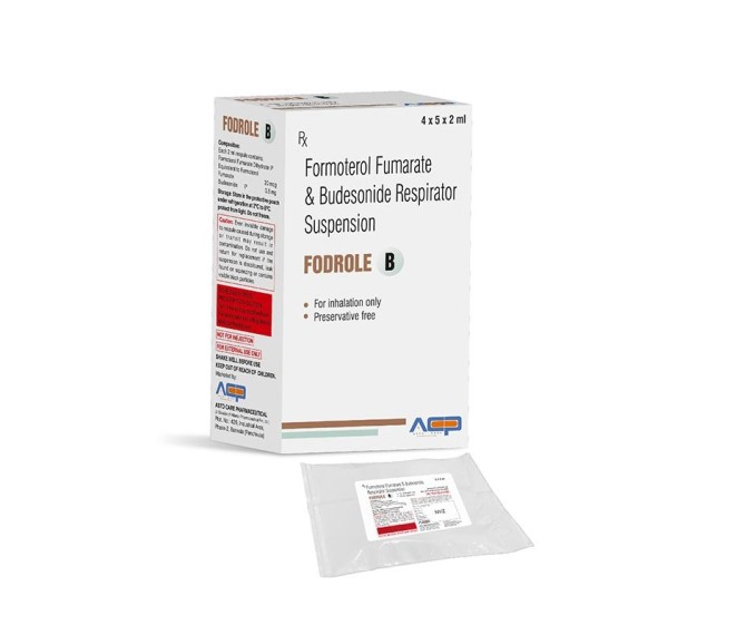 Composition : Formoterol 20 Mcg + Budesonide 0.5 Mg Packing : 2 Ml Type : 8*5*2 Ml Detail:-Fodrole-B Respules is a combination nebule of budesonide and formoterol to help manage asthma and COPD symptoms as prescribed by your healthcare provider.