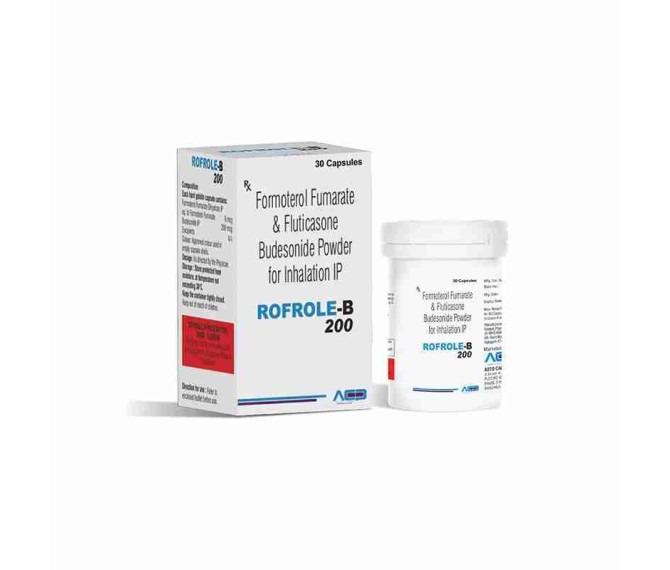 Composition : Budesonide I.p 200 + Formoterol Fumarate Dihydrate I.p 6 Packing : 30`s Type :  1*15 Box Packing Detail:-ROFROLE B 200 Tablet with Budesonide 200 µg and Formoterol Fumarate 6 µg helps manage asthma and respiratory symptoms.